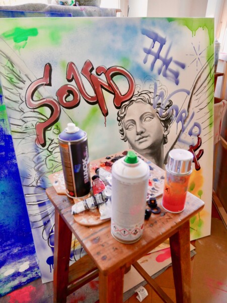 Ihre erste Ausstellung gab sie 2018. In ihrer ersten Wohnung malte sie meist im Wohnzimmer. „Dann wollte ich die Trennung von Farbkleksen und hellen Möbeln“, erklärt sie mit Überzeugung. In Großbarkau bezog sie ihr erstes Atelier.