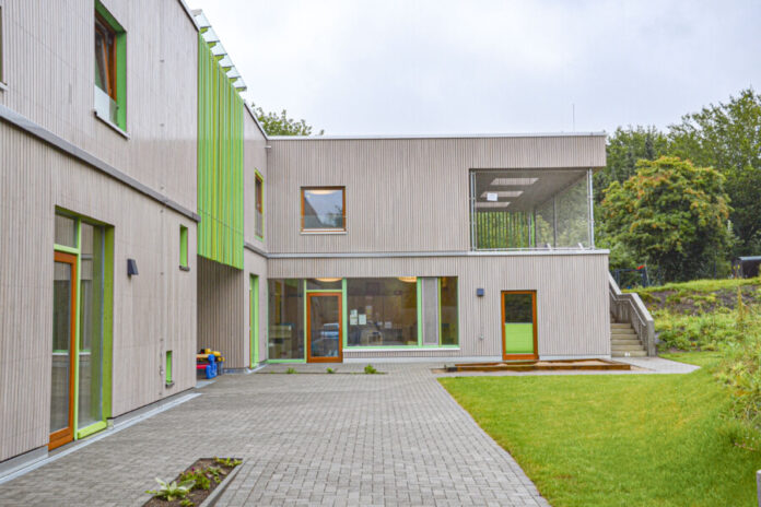 Genau genommen war der Einzugstermin bereits am 1. April 2020. Doch zu dem Zeitpunkt war doch etwas Anderes, genau der Lockdown. „Zuerst durften nur die Kinder der Eltern aus den systemrelevanten Berufen kommen“, erinnert sich Kristin Knoop. „Nach und nach sind dann die anderen Kinder hinzugekommen.“ Jetzt endlich darf sie der Presse den Neubau zeigen. Allerdings unter strikten Hygiene- und Abstandsregeln.