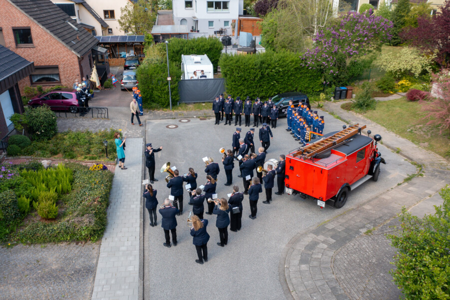 Gemeinsam mit der Jugendfeuerwehr und einem Spielmannszug holten die Mitglieder der Einsatzabteilung ihn zu Hause ab. Doch damit nicht genug: Einer der Oldtimer des Kieler Stadtfeuerwehrverbandes, das „leichte Löschgruppenfahrzeug“ (LLG) aus dem Jahr 1941, stand bereit, um mit Gerd und seiner Familie hinter dem Spielmannszug und seinen Kameradinnen und Kameraden eine Runde durch Wellsee zu drehen.