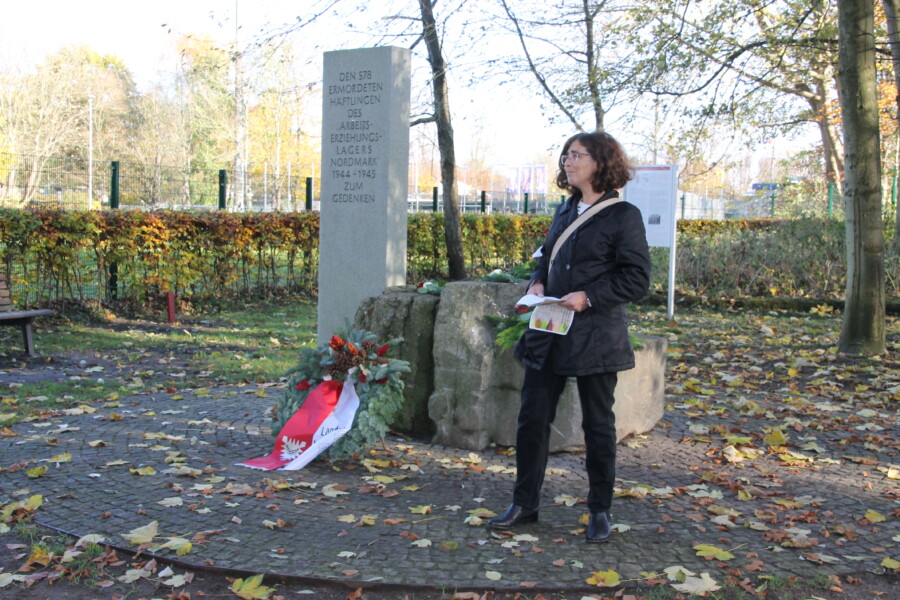 Die Gedenkveranstaltung an der Dokumentations- und Gedenkstätte „Arbeitserziehungslager Nordmark“ am 16. November 2025 beginnt um 11.30 Uhr mit einer Kranzniederlegung und einer anschließenden Ansprache des Kieler Oberbürgermeisters Dr. Ulf Kämpfer. WJ