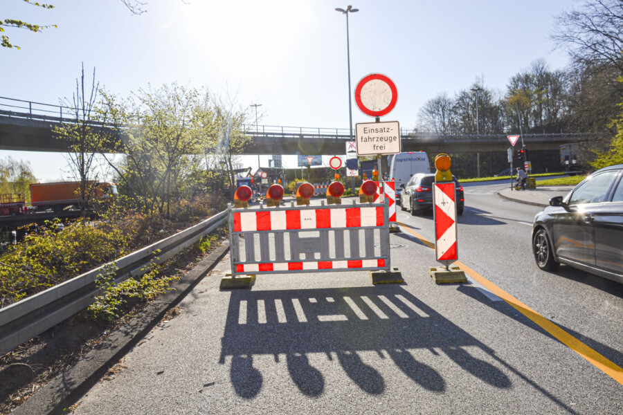 Das Tiefbauamt der Stadt Kiel hat inzwischen mit Arbeiten zur Grundinstandsetzung der Hochstraße Barkauer Kreuz begonnen. Daher ist der „Überflieger“ als Verbindung von der B 404 zur B 76 ebenso gesperrt wie der Kreuzungsbereich darunter. Der durchgehende Verkehr auf dem Theodor-Heuss-Ring wird dadurch aber nicht beeinträchtigt. Die Gewerbegebiete Stormarnstraße und Tonberg sind jederzeit erreichbar. Zunächst sind die Hochstraße und der Kreuzungsbereich unter der Hochstraße (Verbindung Alte Lübecker Chaussee / B 404 sowie Abfahrt B 76 zum Tonberg und zur Alten Lübecker Chaussee) gesperrt. Ebenso ist die Abfahrt von der B 76 (Richtung Norden) zur Neuen Hamburger Straße / B 404 (Richtung Segeberg) für den Verkehr gesperrt. Diese Sperrungen dauern bis zum 16. Juni. Fußgänger*innen und Radfahrer*innen können die Baustellenbereiche auf zum Teil kombinierten Geh- und Radwegen passieren. Die Sperrung wegen der Arbeiten an der Hochstraße nutzt das Tiefbauamt auch dazu, die Ampelanlage im Kreuzungsbereich darunter zu modernisieren. Außerdem gibt es neue Asphaltdecken zwischen Stormarnstraße und Barkauer Kreuz, auch auf den beiden stadtauswärts führenden Fahrspuren zur B 404.