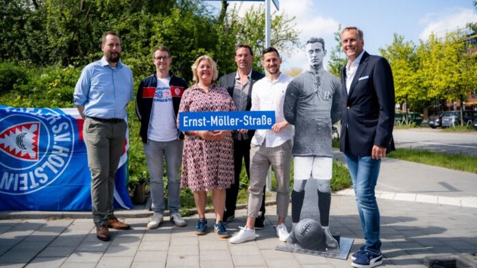Unweit des Holstein-Stadions wurde die Ernst-Möller-Straße feierlich eingeweiht. Benannt ist die von der Projensdorfer Straße abgehende Zufahrt zum Fögeplatz nach dem Torschützen zur ersten Holsteiner Meisterschaft.