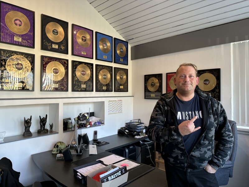 In seinem Büro hängen reihenweise goldene Schallplatten. In einer Ecke stehen Glasvitrinen mit E-Gitarren. Allesamt sind übersät mit Unterschriften beteiligter Musiker seiner Festivals. Doch der Reihe nach.