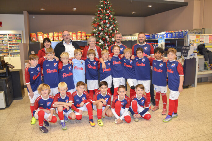 Im Famila-Markt in Russee gab es Grund zur Freude: Die E2-Jugend von Eidertal Molfsee durfte ihre neuen Trikots entgegennehmen.