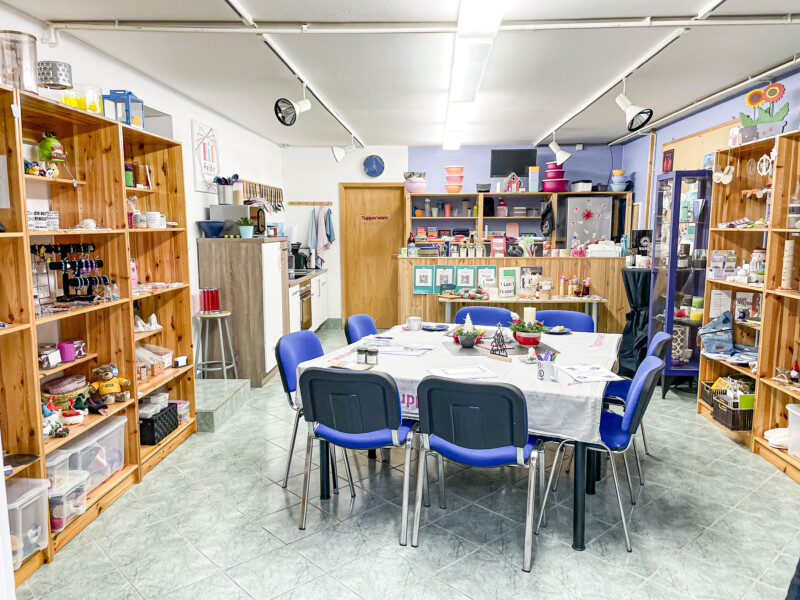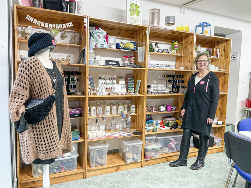 „Wir haben für jedes Gewerk eine Online-Präsentation“, schildert sie die Vorgehensweise, die sich bewährt hat und bis heute besteht. Die Partys dauern dabei im Gegensatz zu früher nicht mehr einen Nachmittag oder Abend, sondern eine ganze Woche. „Es ist wie das Lesen einer Zeitung“, erklärt Martina Klingenberg. Wer teilnehmen möchte, tritt der Gruppe bei und erhält ausführliche Erklärungen zum ganzen Handling, zum formellen Rahmen, zu Angeboten und Zeiträumen. Dann werden die einzelnen Produkte präsentiert. „Und da es blöd ist, wenn jeder einzelne Kunde seine Topflappen aus deinem Wohnzimmer abholt, haben wir diesen Raum gestartet“, bemerkt die 59-Jährige schmunzelnd und blickt sich in der HiD-Lounge um, die sie gern als ihr durch Corona entstandenes Homeoffice bezeichnet.