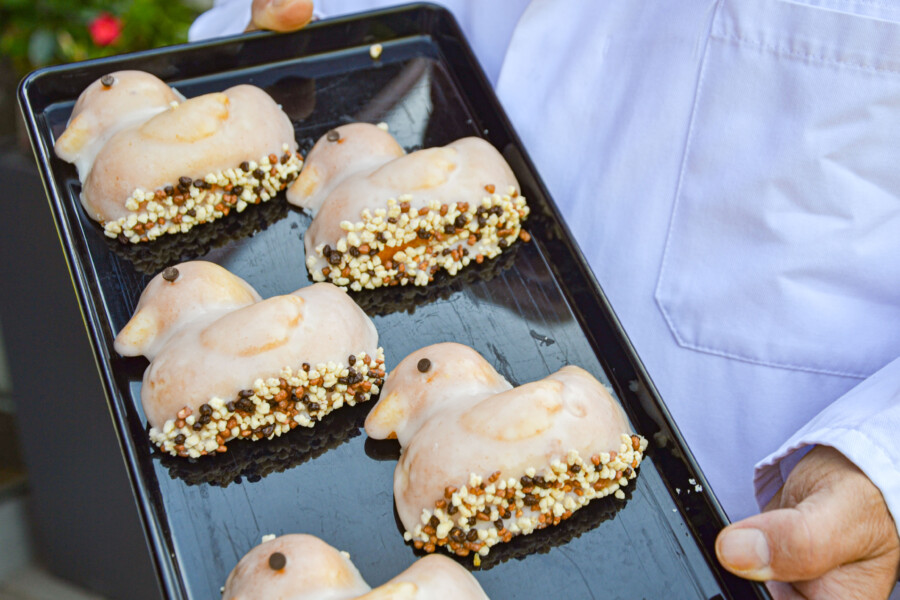 Einer der regelmäßigen Sponsoren ist die Bäckerei Steiskal mit Hauptsitz in Neumeimersdorf, die Jahr für Jahr zum Entenrennen spezielles Enten-Backwerk herstellt. Durch den späteren Veranstaltungstermin ist die Bäckerei mit einer neuen Herausforderung konfrontiert: „Die Schokolade würde uns schmelzen“, erzählt Geschäftsführer Eckhardt Schütz. Auf der Suche nach Lösungen hat sein Team mehrere verschiedene Alternativen ausprobiert. Die Entscheidung fiel auf einen Rührkuchen mit Zitronengeschmack und Zuckerglasur. „Das schmeckt ganz sommerlich“, so Schütz. „Unten haben wir Puffreis in verschiedenen Geschmacksnoten, zum Beispiel Schokolade und Karamell.“ Die Tu-Gutes-Enten werden ab Mitte/ Ende Juli verkauft. 25 Cent pro Kuchen werden gespendet.