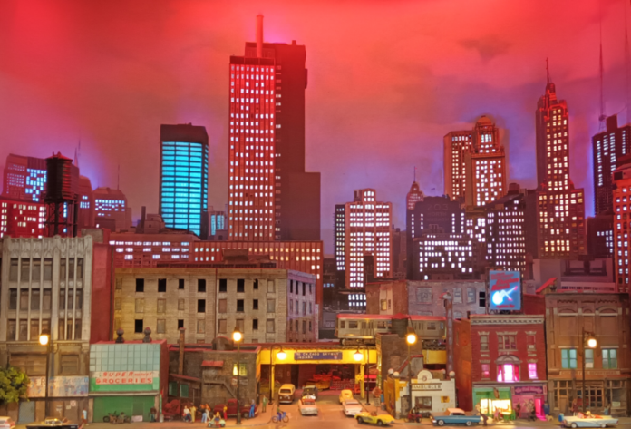 Genau diese Leidenschaft ist es, die die aufwendigen Landschaften zum Leben erweckt. So hat Burkhard Leo über ein Jahr lang an seiner sogenannten Puppenstube gearbeitet: einem Schaukasten mit dem Titel „Chicago South Side“. „Dafür habe ich einen Preis gewonnen“, berichtet er stolz. Die Leidenschaft, die er in dieses Projekt gesteckt hat, ist deutlich zu erkennen. Die Beleuchtung im Schaukasten lässt sich farblich verändern, und auch in den Gebäuden lässt sich das Licht anknipsen. Sogar einzelne Figuren sind ihren originalen Vorbildern nachempfunden.