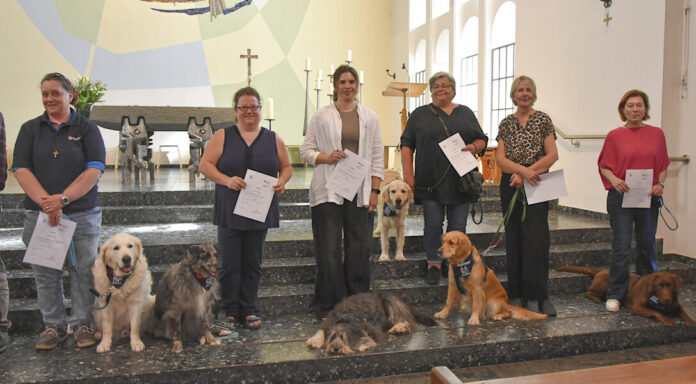 „Wau“, so eröffnete Diakon Thomas Kleibrink im Juli den Segnungsgottesdienst in der Liebfrauenkirche für die frisch ausgebildeten Besuchsdienst-Teams. Diese bestehen jeweils aus einem Hund und seinem ehrenamtlichen Begleiter oder seiner Begleiterin.