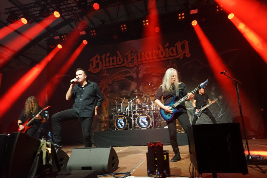 Textsicher zeigte sich de Menge auch bei „The bard`s song“ vom zweiten Headliner des Abends: Blind Guardian. Dabei passen sie so gar nicht ins Mittelalter-Spektrum. „Wir sind die Exoten des Abends“, lachte Frontmann Hansi Kürsch. „Das haben wir selten, dass wir die modernste Band sind. Wir repräsentieren das Genre New Metal.“ Doch spätestens beim letzten Song ihres Auftritts war klar, warum Organisator Kai Michelmann sie eingeladen hatte, trägt er doch den Titel „Valhalla“, quasi die Hymne des Festivals.