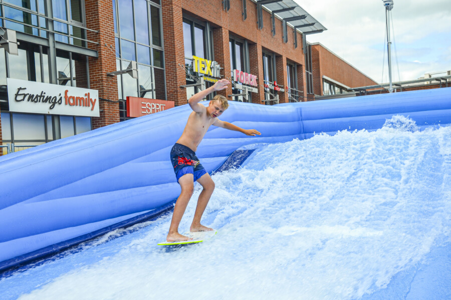 Bis zum 10. September machen die „Surf Days“ für mehrere Wochen Station im CITTI-PARK. Das Einzigartige an der Konstruktion ist das authentische Surfgefühl, verbunden mit hoher Einsteigerfreundlichkeit.