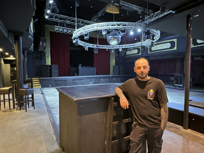 Beim Eintreten fällt auf, dass die Fassade von einem Baugerüst verdeckt ist. Ein Graffiti-Künstler ist am Werk. „Die Außenfassade wird komplett modernisiert“, erzählt Christian Streck. „Wir stellen uns gerade komplett neu auf.“ Grund dafür ist, dass der Laden seit April 2025 einen neuen Besitzer hat. Nachdem zwanzig Jahre kaum investiert wurde, soll nun nach und nach alles modernisiert werden. Zuerst wurden die Tresen erneuert und das DJ-Pult auf die Bühne verlegt. Als nächstes sollen die Lichttechnik und die Soundtechnik erneuert werden. Die geplanten Kosten dafür liegen bei 600.000 Euro. „Wir machen das nicht in einem Rutsch, sondern haben einen Staffelplan“, so Christian. „Im laufenden Betrieb wird alle zwei Monate etwas Neues gemacht.“