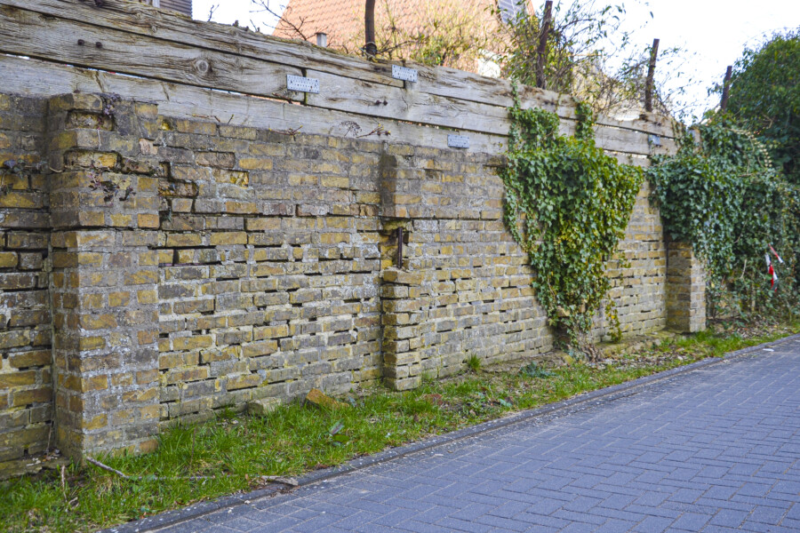 Die freie Fläche wurde als Parkplatz mit langen Holzdächern überdacht. Die alte Mauer verfiel an vielen Stellen. Schon in den Sechzigern wurden Eisenpfähle eingerammt und mit Maschendraht bespannt. Nur in Richtung Ottweilerstraße ist die Mauer noch recht gut erhalten. Peter Schumacher
