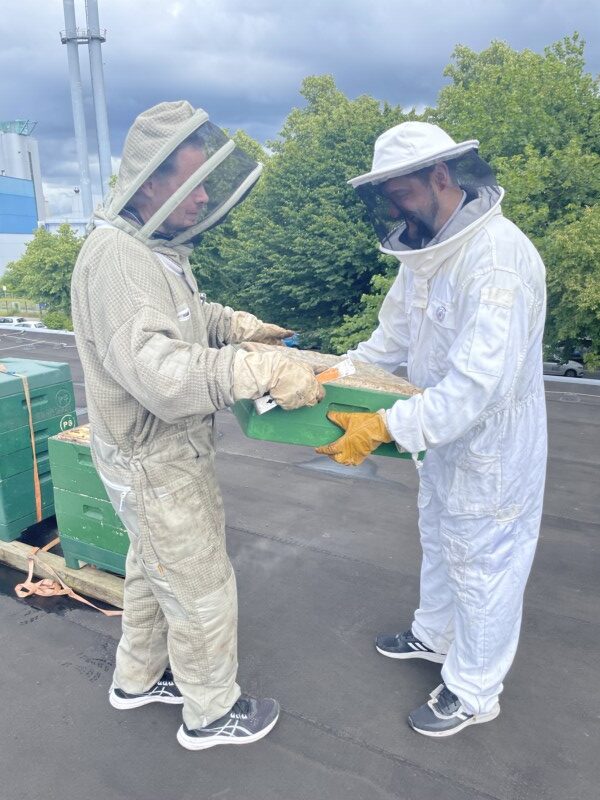 Ein eigener, exklusiver REWE-Honig mit Blütennektar aus der unmittelbaren Umgebung? Seit Kurzem nimmt der Einfall von Marktleiter Moritz Breske Formen an: Am 10. Juni 2024 zogen Bienen auf dem Dach des REWE-Centers ein.